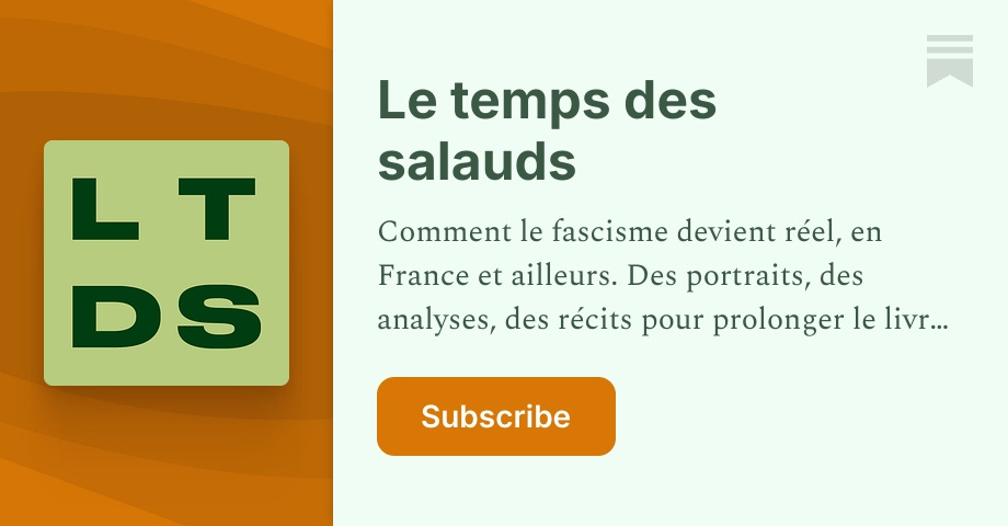 Luk@jlai.luMFrançais · 14 days agoLe temps des salauds | Hugues Jallonplus-squareletempsdessalauds.substack.comexternal-linkmessage-square0linkfedilinkarrow-up13arrow-down10