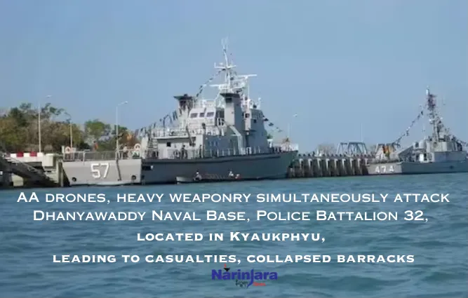 arrow-up11arrow-down1external-linkAA drones, heavy weaponry simultaneously attack Dhanyawaddy Naval Base, Police Battalion 32, located in Kyaukphyu, leading to casualties, collapsed barracksplus-squarewww.narinjara.comRandAlThor@lemmy.caM · 30 days agomessage-square0linkfedilink